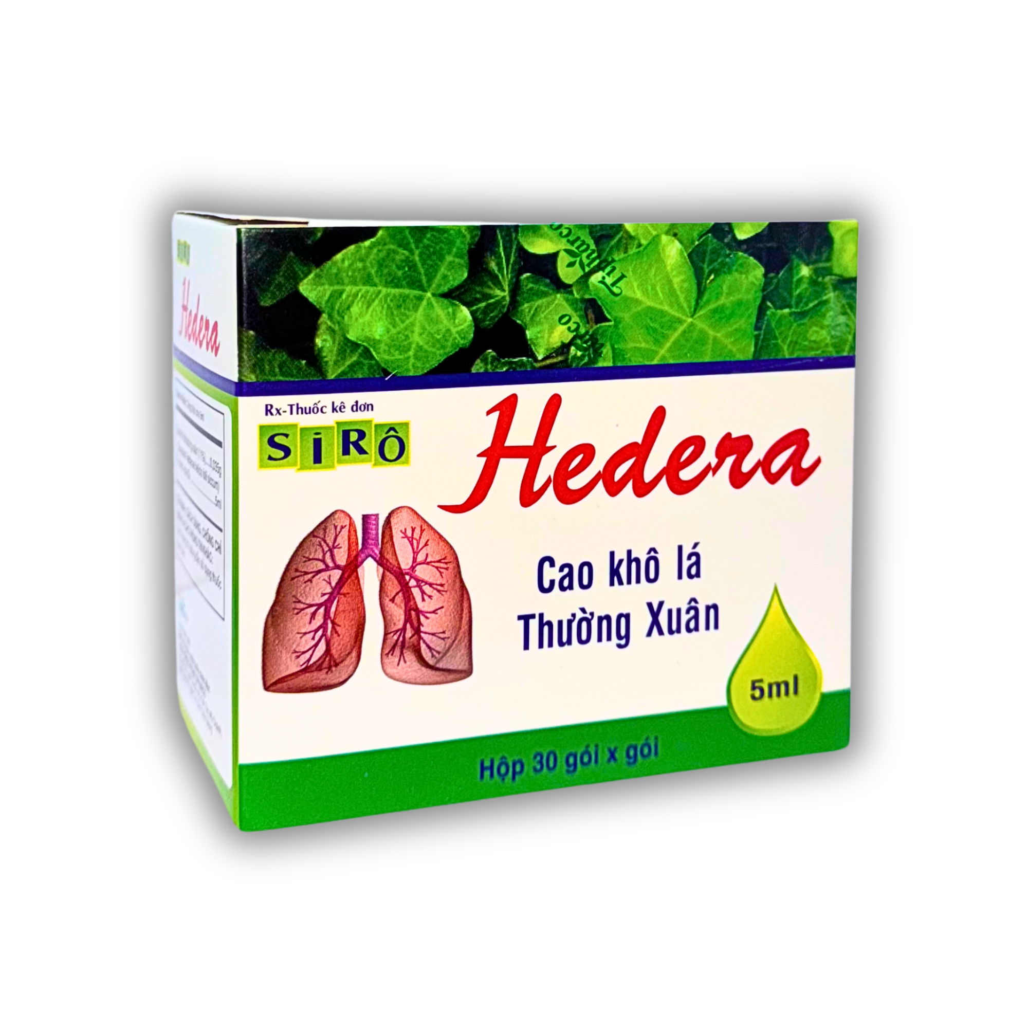 Siro Hedera (gói 5ml) là thuốc kê đơn dạng sirô uống, có thành phần hoạt chất từ cao khô lá thường xuân. Thuốc được dùng trong các trường hợp viêm đường hô hấp cấp có kèm theo ho và điều trị triệu chứng trong các bệnh lý viêm phế quản mạn tính.