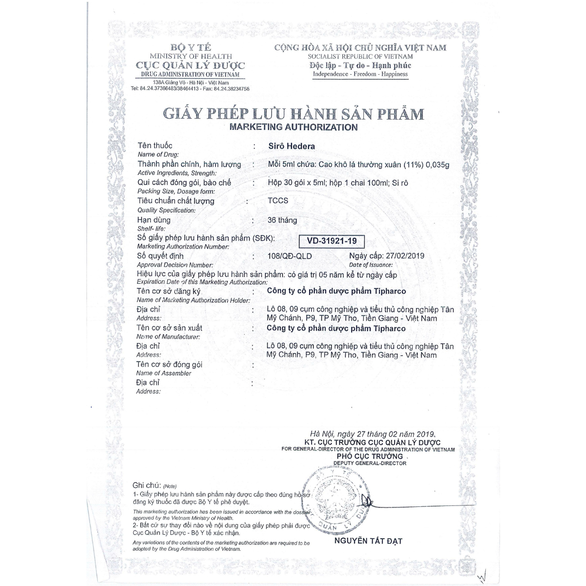 SIRO HEDERA ĐIỀU TRỊ VIÊM ĐƯỜNG HÔ HẤP, VIÊM PHẾ QUẢN MÃN TÍNH (HỘP 30 GÓI X 5ML)
